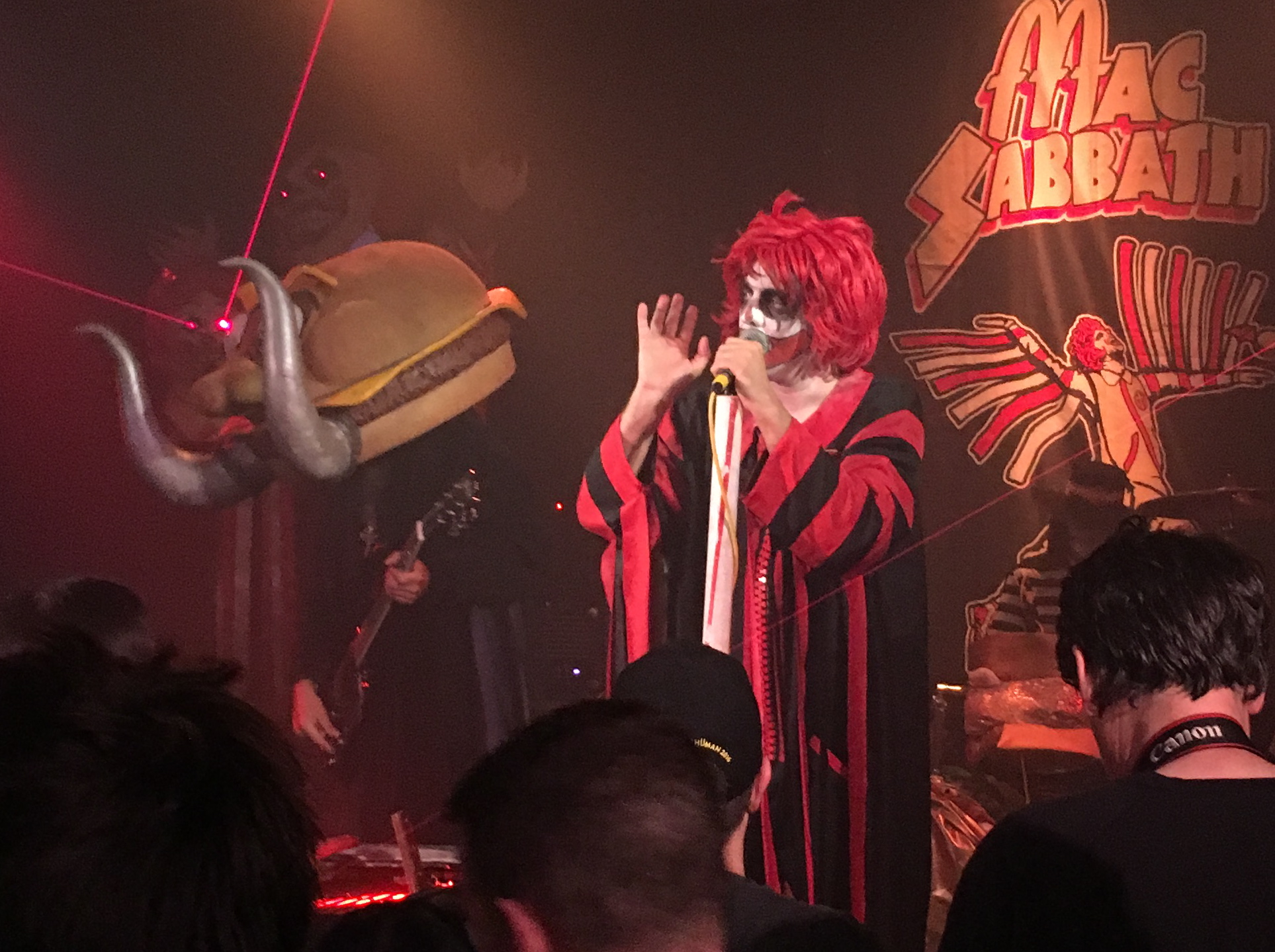 This was theatre of the absurd, and Mac Sabbath pulled it off in brilliant fashion. The band’s performance was loud, tight, and filled with cheeky references to McRibs, nuggets, and “Rocksham shakes.” One of Black Sabbath’s classic tunes is Iron Man, but in this alternate corporate fast food reality, Ronald raised his arms and invoked, “I am Frying Pan!” The smoke machine filled the stage with bursts of steam and Ronald invoked: